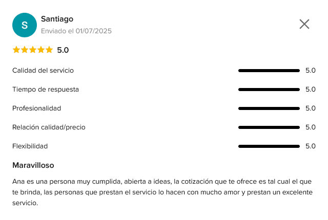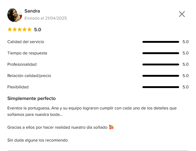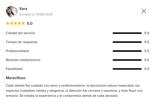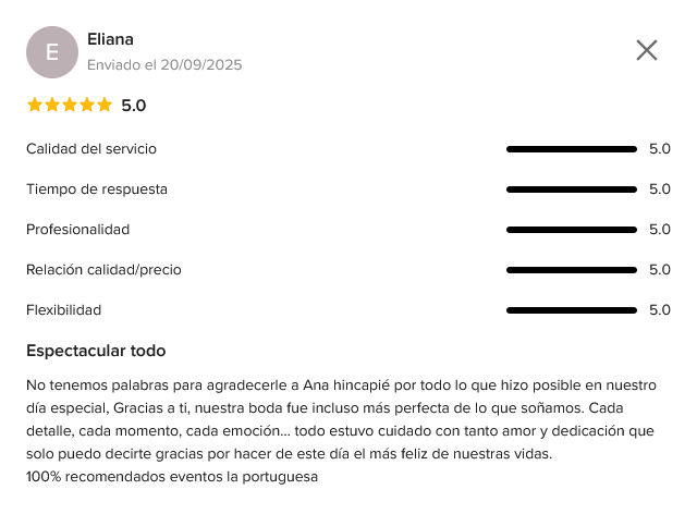 Con un enfoque personalizado, Ana se encargará de cada detalle de tu evento, asegurando que todo sea perfecto desde el inicio hasta el final